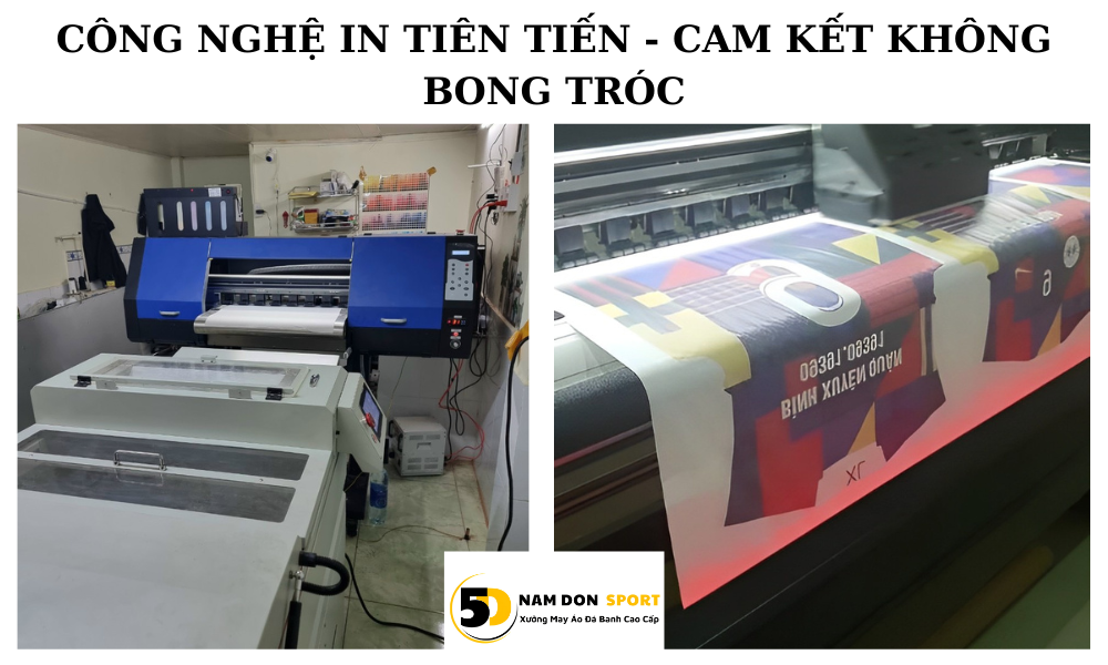 Xưởng may Nam Don Sport sử dụng hoàn toàn công nghệ in chuyển nhiệt để đảm bảo độ bền màu in vĩnh viễn.
